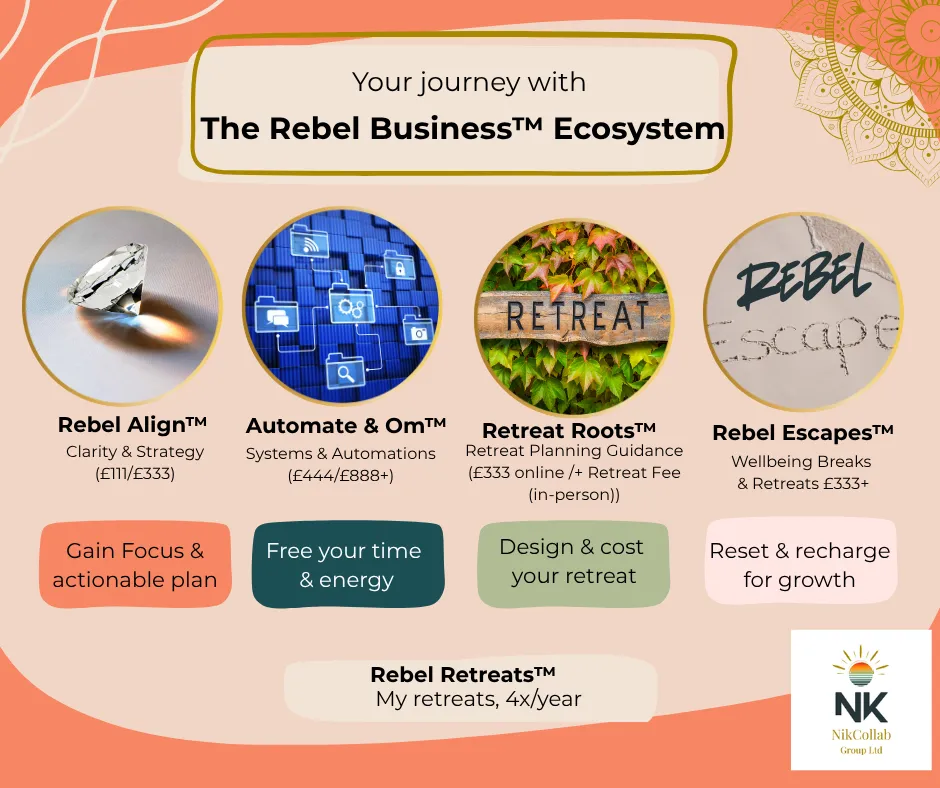 Founder of NikCollab Group Ltd. Business strategist. Retreat planner. Creator of the Rebel Business Method™. Mother of 4. Former Channel 4 contestant.